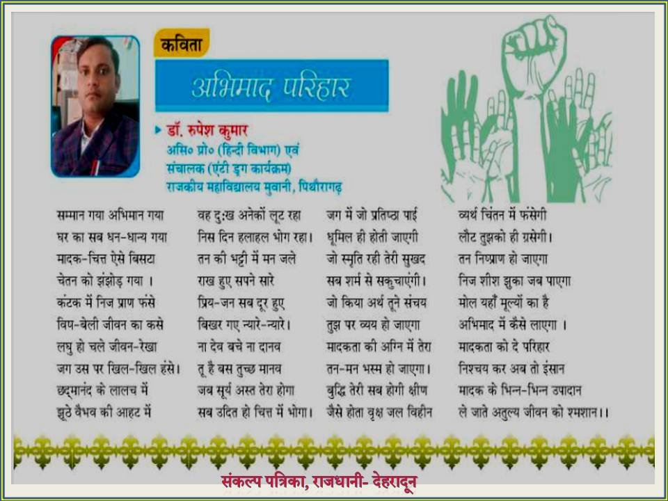 इसी दृष्टिकोण के साथ राजकीय महाविद्यालय मुवानी, पिथौरागढ़ की एंटी ड्रग समिति छात्रों, शिक्षकों, कर्मचारियों और स्थानीय समुदाय के सहयोग से नशे के विरुद्ध जागरूकता अभियान चलाती है। समिति का कार्य केवल अनुशासनात्मक नियंत्रण तक सीमित न होकर संवाद, परामर्श और सहभागिता के माध्यम से विद्यार्थियों में आत्मबोध और सामाजिक जिम्मेदारी का विकास करना है। यह समिति महाविद्यालय परिसर के साथ-साथ आसपास के ग्रामीण एवं स्थानीय क्षेत्रों में भी नशा-मुक्ति का संदेश प्रसारित करती है, जिससे महाविद्यालय एक सामाजिक चेतना केंद्र के रूप में स्थापित हो सके।